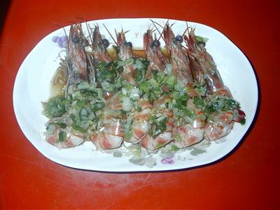 材料:草蝦或明蝦.蒜末.蔥末